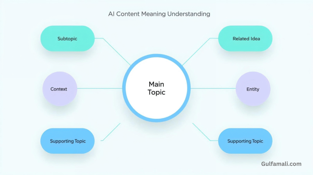 AI breaks content into concepts and topics and looks at how ideas connect. This allows systems to understand the overall subject instead of isolated phrases. Google’s documentation shows that search systems analyze topics, entities, and relationships to understand what a page is really about.