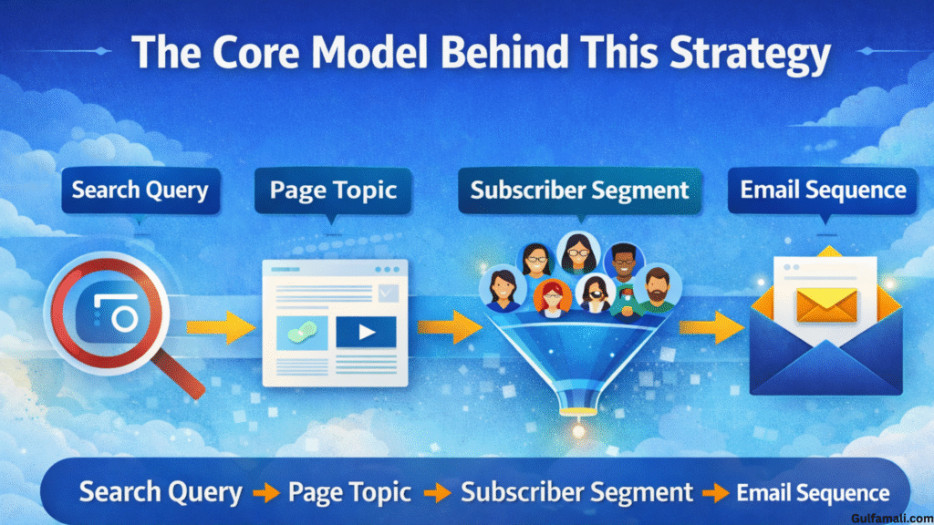 Search Query → Page Topic → Subscriber Segment → Email Sequence