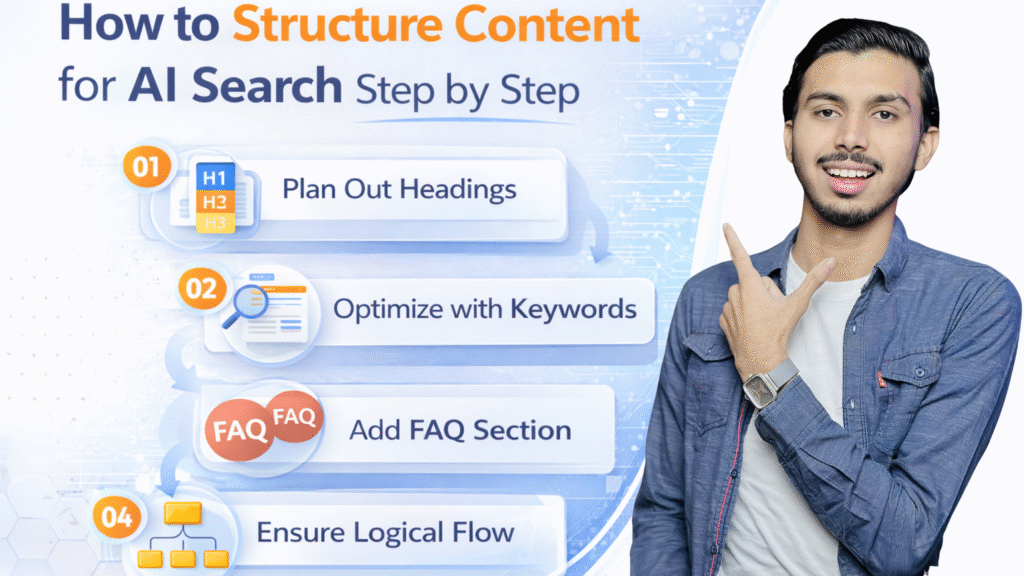 In this guide, you will learn how to structure content using headings, logical flow, and FAQ sections so both readers and AI-powered search engines can understand the topic clearly.